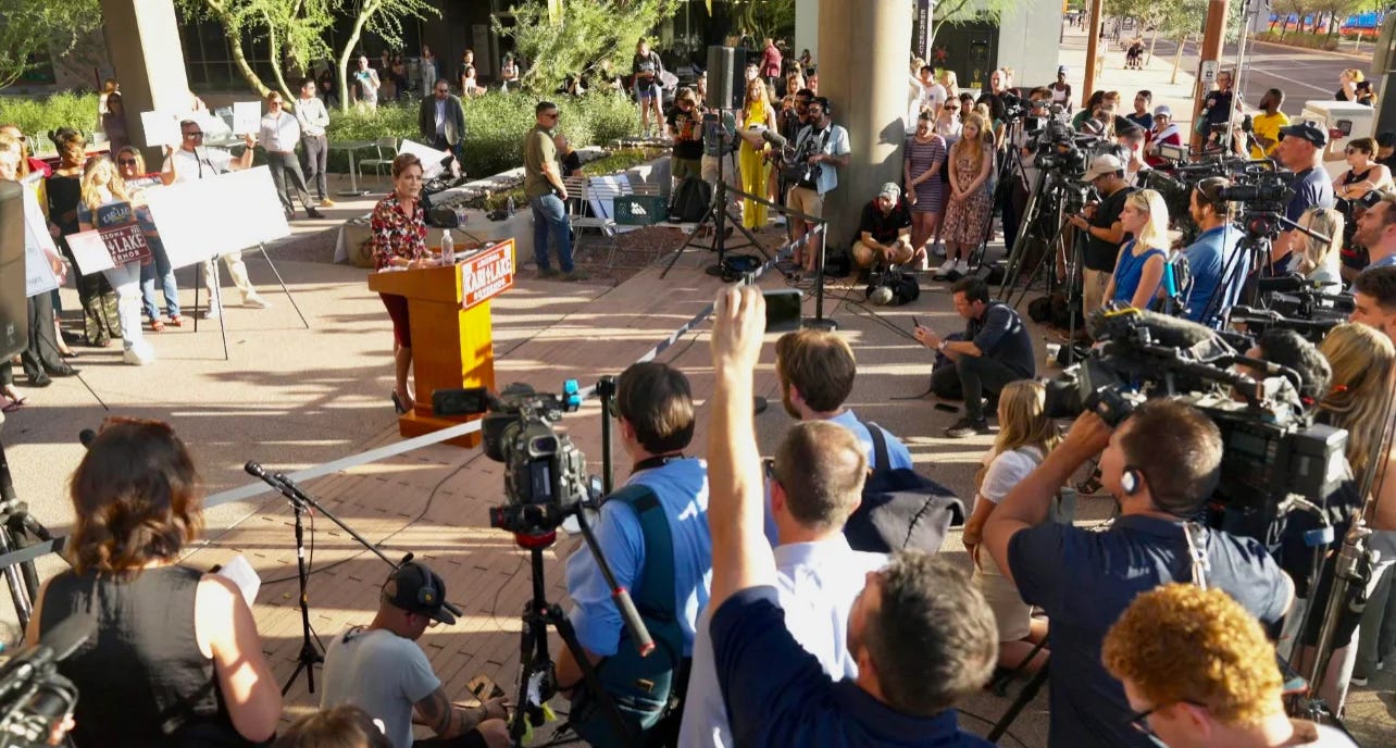 Kari Lake has 3 decades of media experience. Not everyone will feel comfortable conducting a press conference exactly like this, but everyone can learn from this 28-minute video. Below is a collection of details that I observed about how well Lake handled this particular press conference.